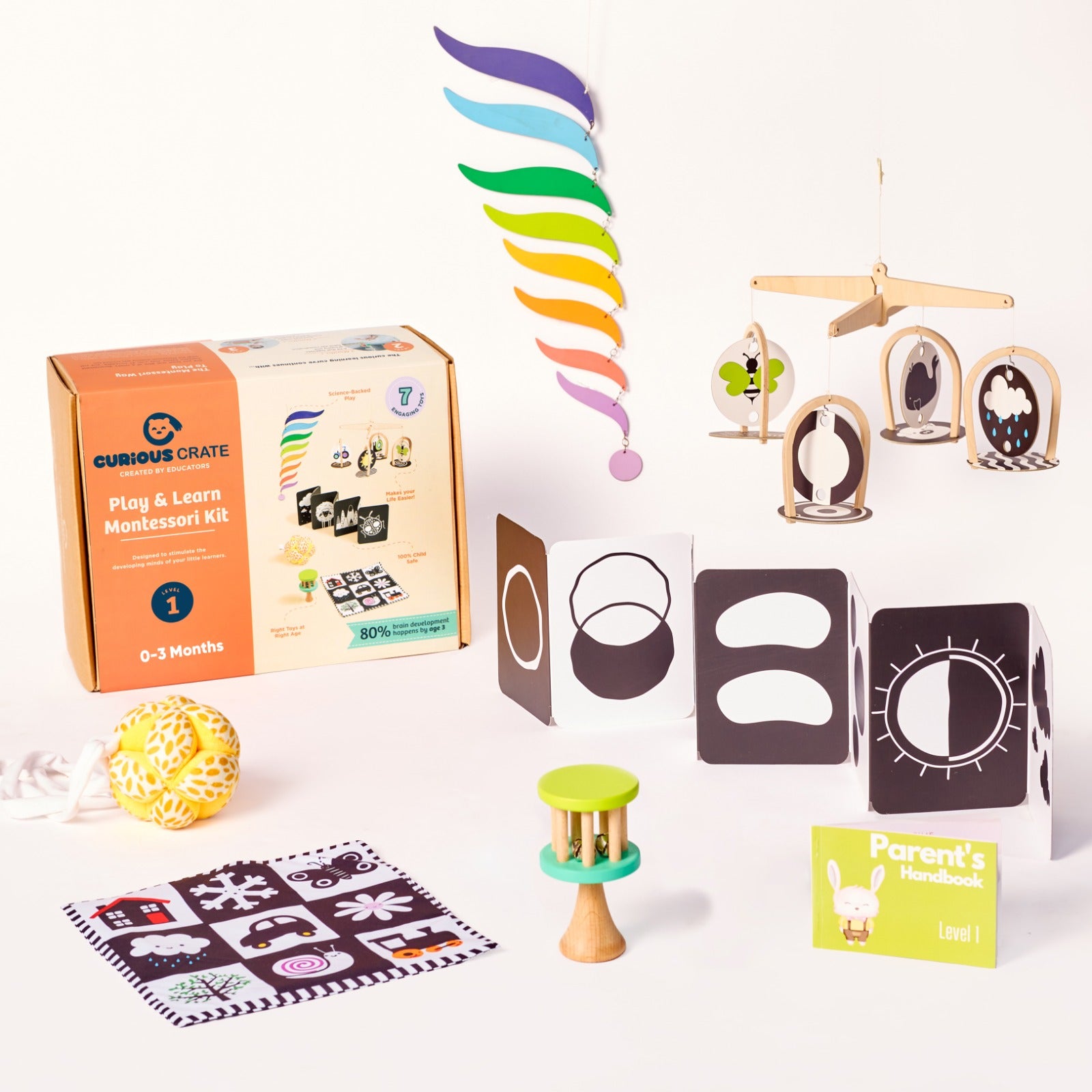0-3 Months | Curious Crate Wooden Montessori Toys | Educational Play Set