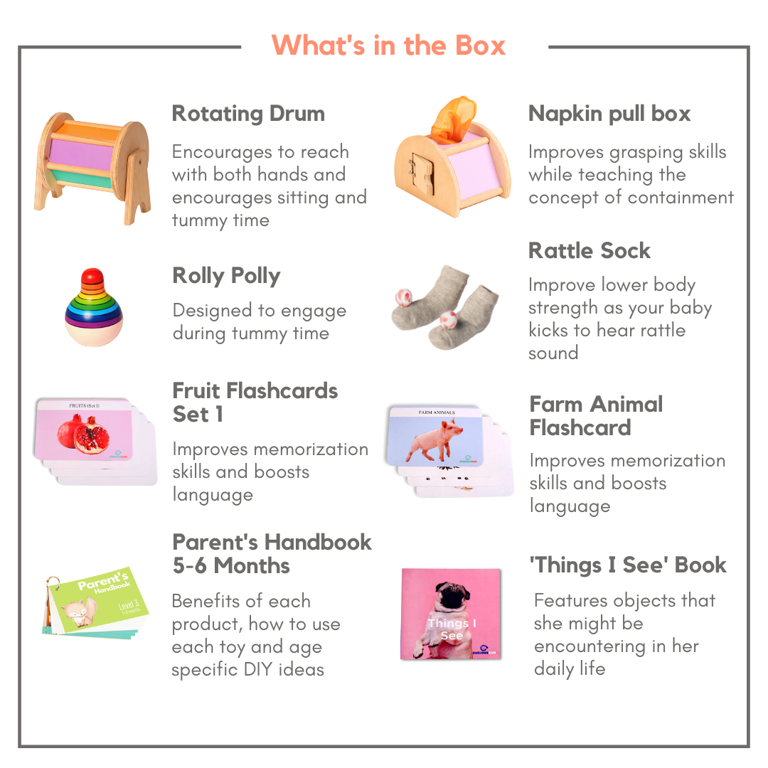 Benefits of each product, how to use each toy and age specific DIY ideas